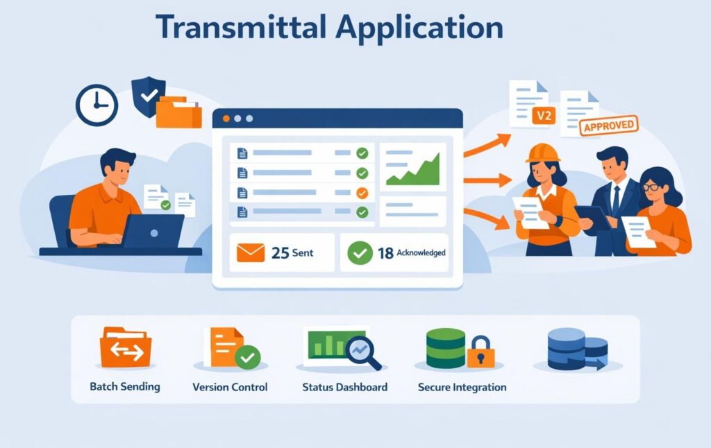 Transmittal Application enables clients to send documents to external parties with guaranteed tracking, audit-ready records, and structured traceability. Unlike traditional email, each transmittal captures comprehensive metadata; including transmission timestamp, sender, recipients, document list, version details, and acknowledgments, providing complete visibility into who received what, when, and under which conditions. The application standardizes outbound document exchanges, supports batch transmissions, and surfaces status dashboards for operational oversight and regulatory inspection readiness.